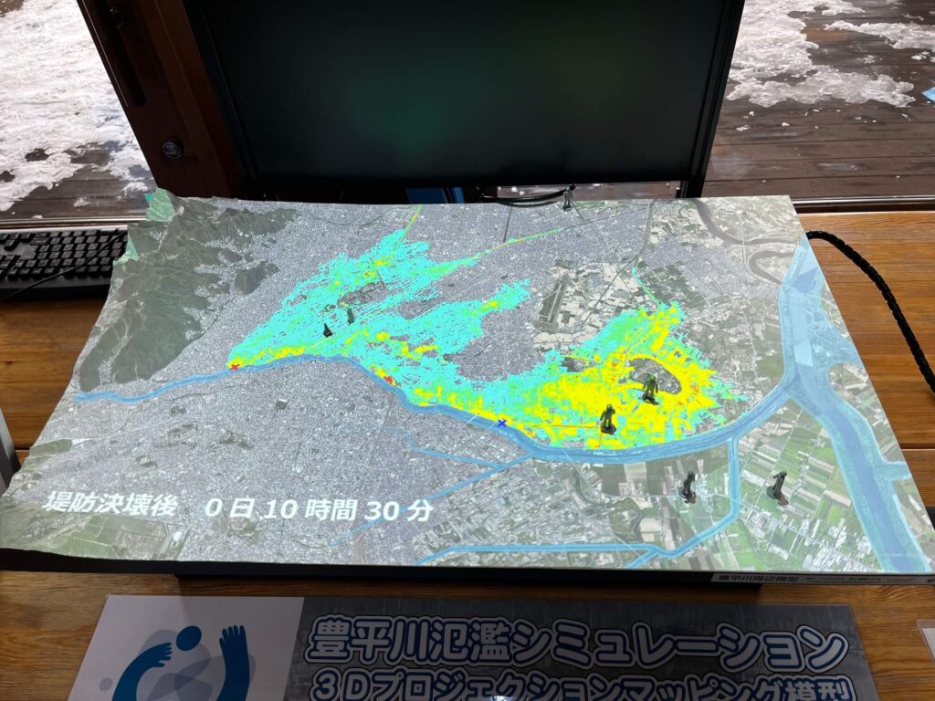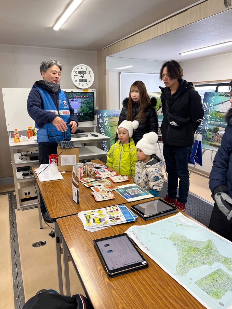 豊平川の氾濫シミュレーションや、砂子組さんが炊き出しなどをしていて、とても楽しいイベントでした。