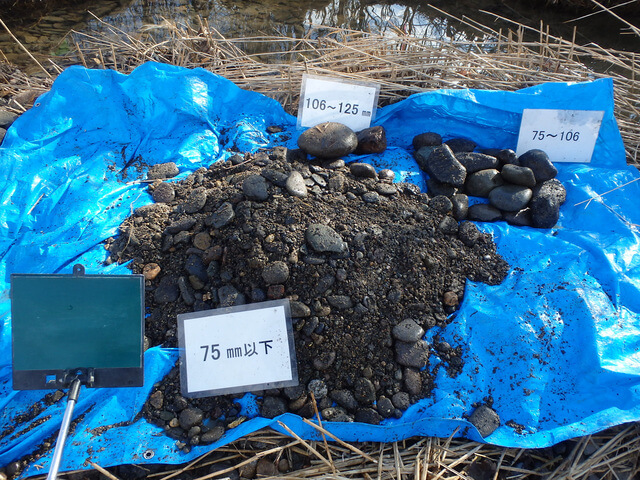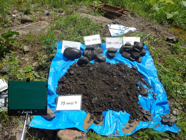 粒径調査: ふるい分け試験はもちろん、大礫に対しては写真解析法や枠法による現地計測にも対応